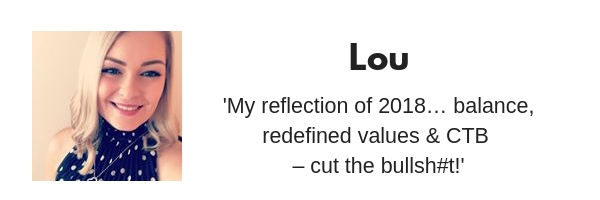 Today I have a healthy work/life balance & really understand what makes me happy. Importantly I now understand what I give & get from relationships, romantic & platonic. This enables me to enrich the time I spend with those closest to me & CTB or noise that can sometimes de-rails us; actions speak louder than words!